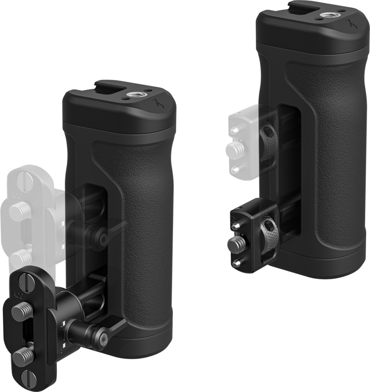 The handle can be mounted on either side of the cage. To switch sides, detach and reconfigure the aluminum connector to the opposite side of the handle.