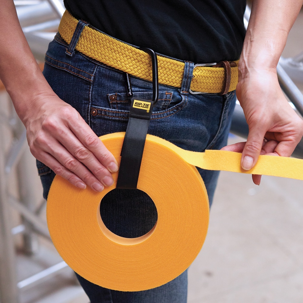 The CableCarrier is a sturdy woven strap attached to a lightweight metal carabiner with a spring-release mechanism. Easily hold wires, cords or ropes in place. Attach it to a belt for hands-free carrying or use it as a hanger during cable runs.