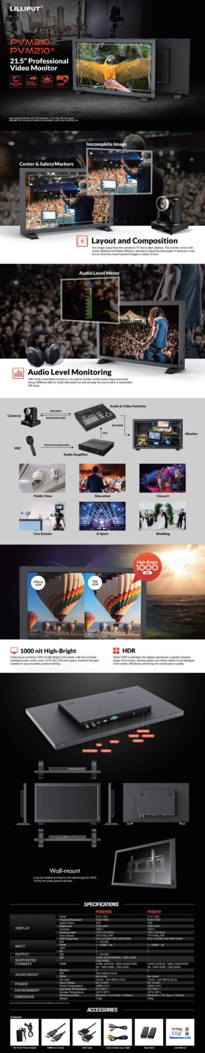 21.5″ LILLIPUT PVM210S high brightness video monitor