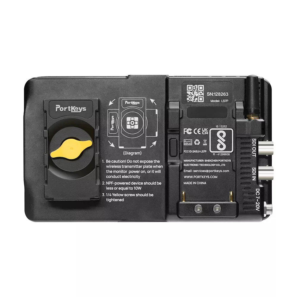 - Built-in Sony NP-F dummy battery plate with power passthrough(8V/10W) to attach and power a wireless video receiver at the back of the LS7P.