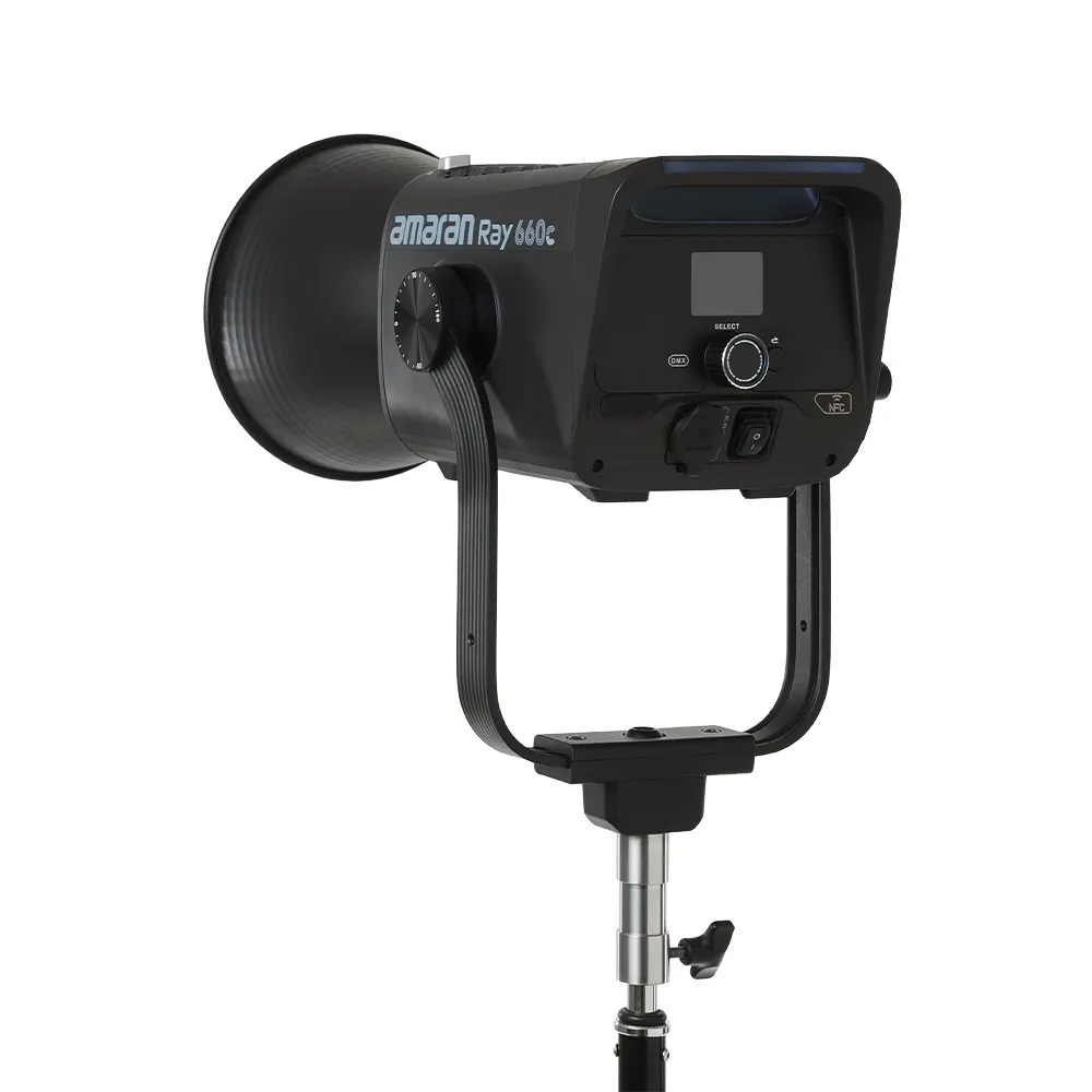 Designed for home studios and on-location spaces that need more punch, the amaran Ray 660c is a 660W full-color point-source LED light powered by the OmniColor light engine – delivering true-to-life color and powerful, studio-quality output in a streamlined, monolight design that runs on a single AC cable. With DMX control via USB-C and an IP54-rated build for real-world shoots, the amaran Ray 660c keeps setups simple and efficient – from larger studios to expansive outdoor spaces.
