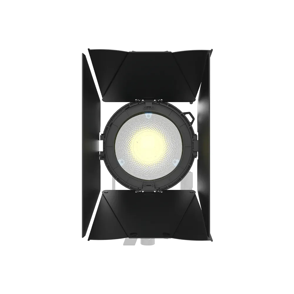 The CF4 Barn Doors mount to the front of the CF4 Fresnel to cut and shape the beam. Four main doors and four slide-out extensions control spill. Additionally, the CF4 Barn Doors can hold a standard 5” scrim to control the light output.