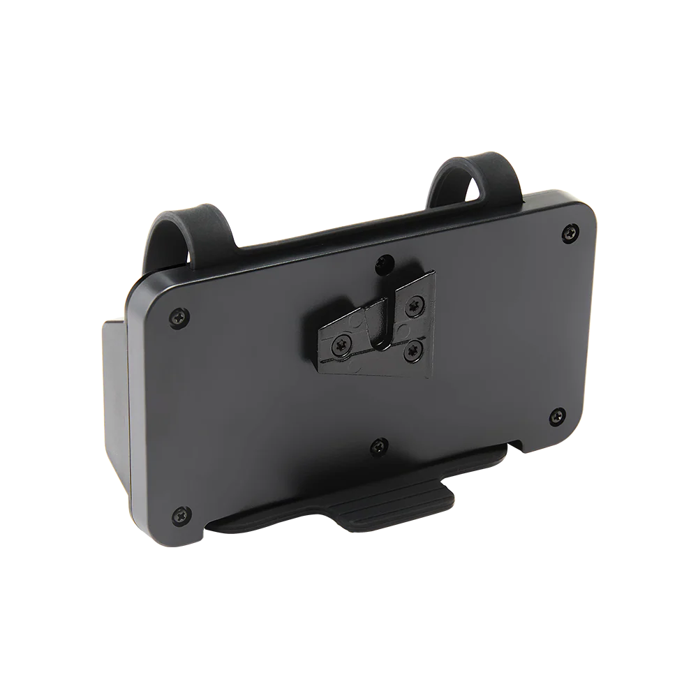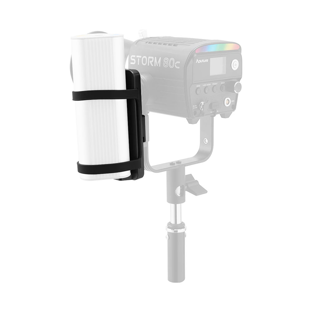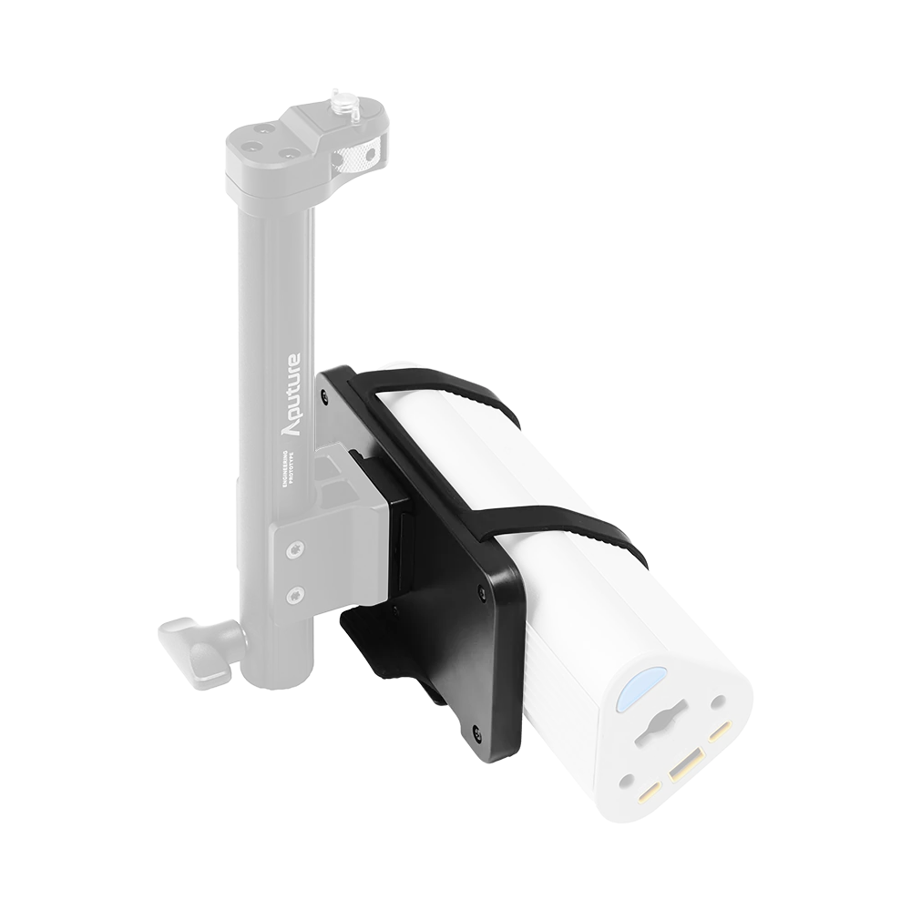 The Aputure V-Mount Bracket for Power Bank is a metal battery bracket that secures to the bottom of the STORM 80c Handheld Bracket. It gives users an option to strap a power bank to their STORM 80c set up to power the light using USB-C. This Bracket is compatible with the amaran Peak.