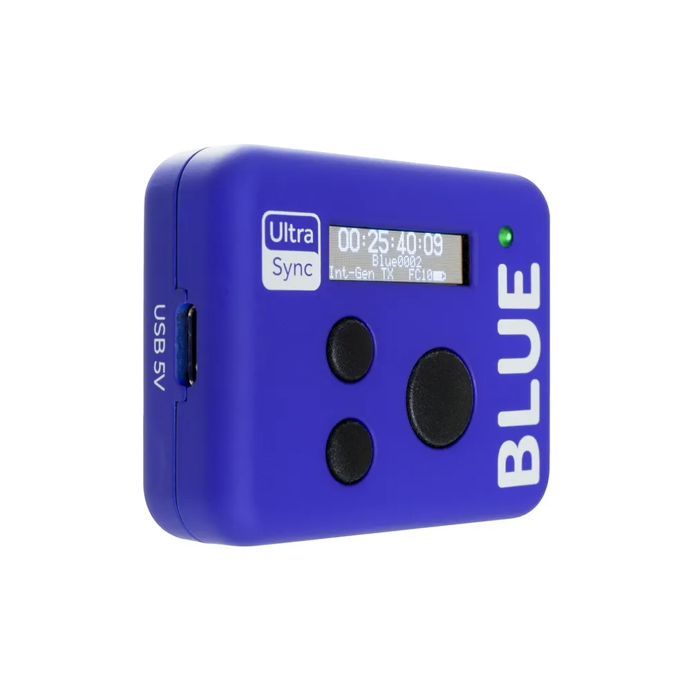 - Or, use long-range RF to sync multiple UltraSync BLUEs, or to sync to other Timecode Systems products. Timecode is embedded into the media file and automatically recognised by professional NLEs.