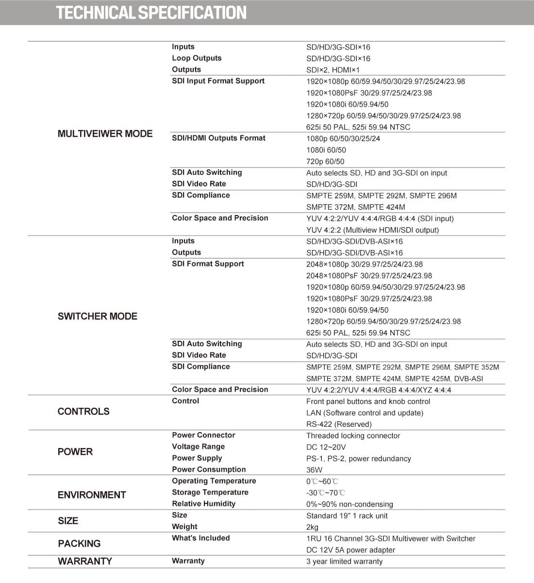 - Dual mode, 16-CH multiviewer and 16×16 matrix switcher
