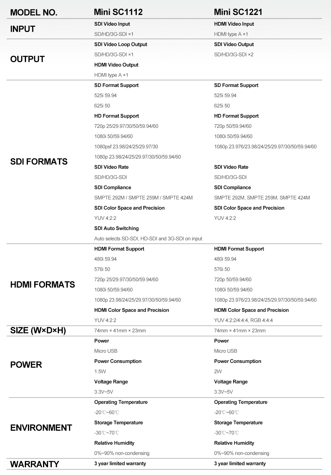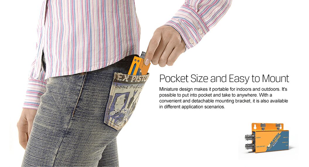 The Mini SC1112 is a Pocket-size broadcast Converter, it converts SDI input signal to HDMI signal and with SDI loop out. it is very convenient for users with the full size SDI and HDMI connectors.