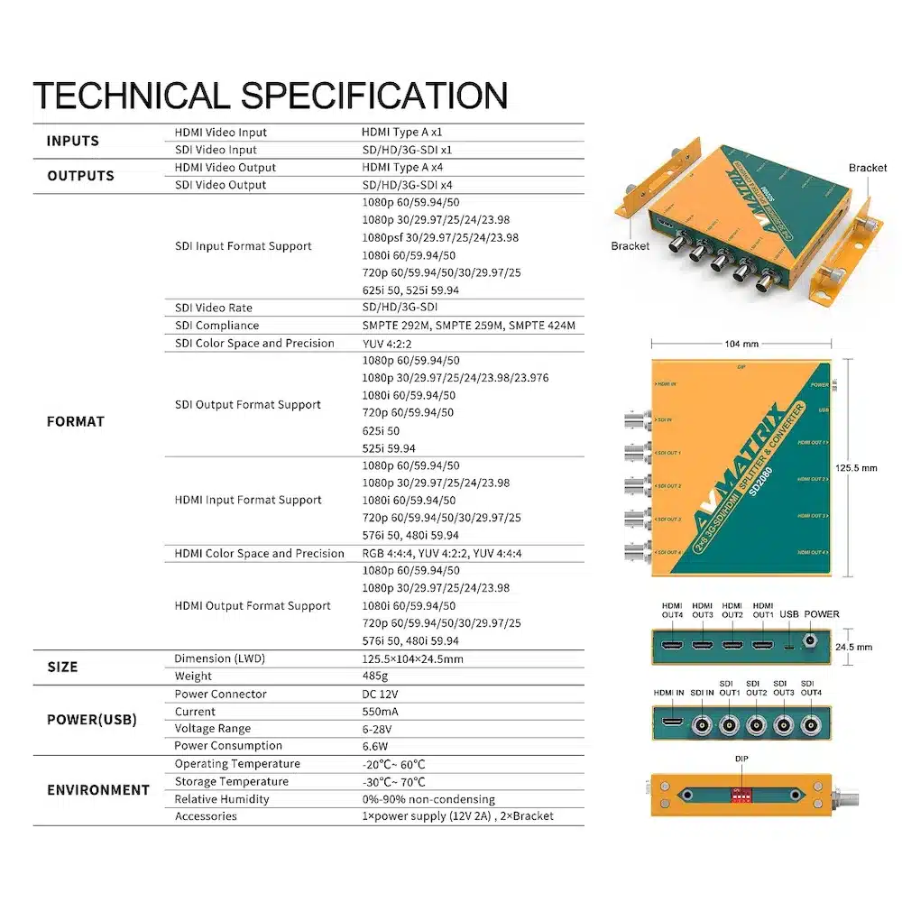 AVMATRIX SD2080 2×8 SDI/HDMI splitter and converter