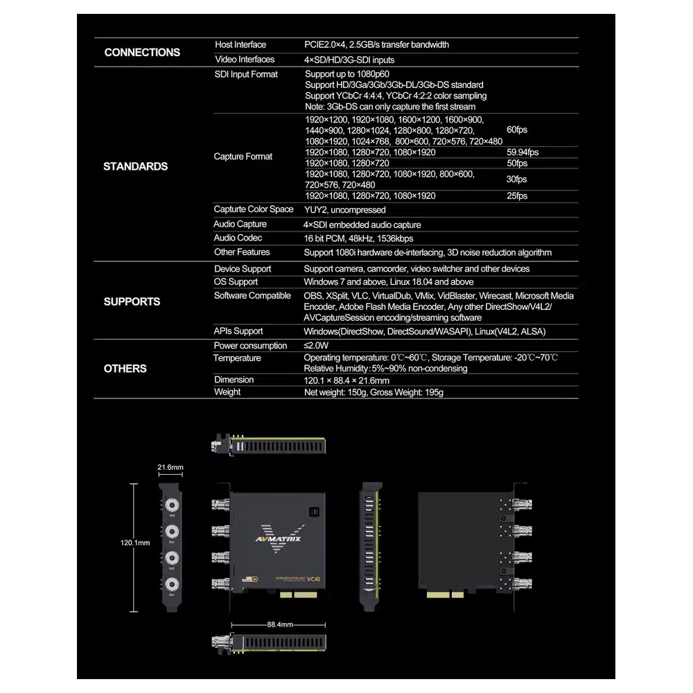 AVMATRIX VC41 4-CH 3G-SDI PCIE Capture Card