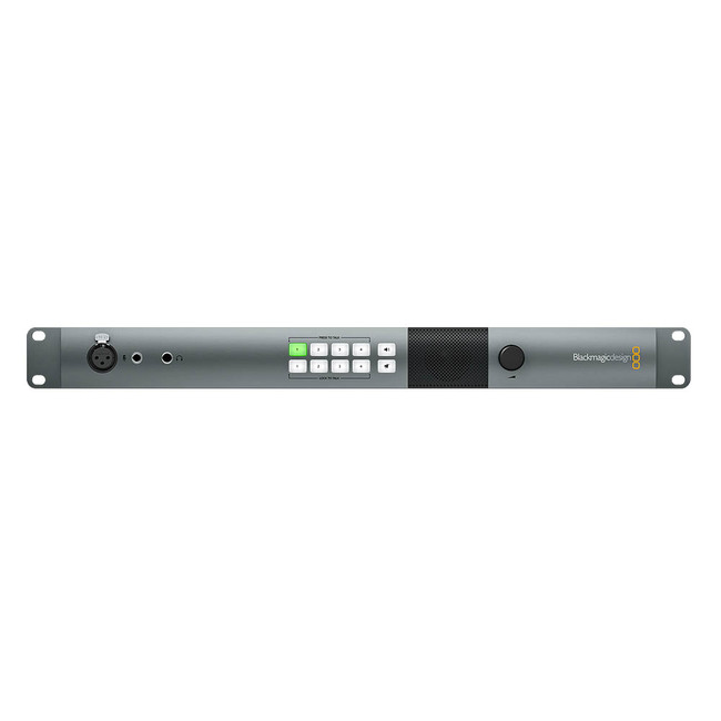 The new communication features make the ATEM Studio Converter 2 easier to use in situations where multiple cameras are used for transmission. The front panel of the new model is equipped with an integrated speaker and a microphone input output on an XLR connector. The director can thus monitor communications directly from the front panel, without the use of headphones, which were a necessity with the previous version of the device. The front panel also hosts a speaker mute button and a rotary volume control, while the front microphone input additionally allows the use of microphones on a flexible “gooseneck”