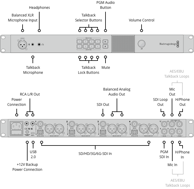 microphone output. Combined outputs for connecting to other ATEM Studio Converters.