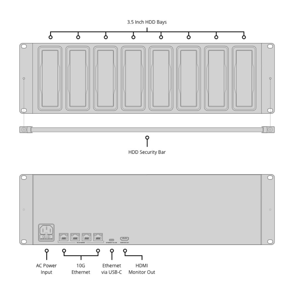 With Blackmagic Cloud support, files can be synced globally so you can back up projects you’re working on in DaVinci Resolve. You can monitor all storage, connection and sync activity in real-time on a display connected via HDMI monitoring output. Blackmagic Cloud Backup 8 includes 4 10G Ethernet ports for network sharing, an Ethernet port via USB-C and a built-in power supply – all in a sleek rack-mountable design.