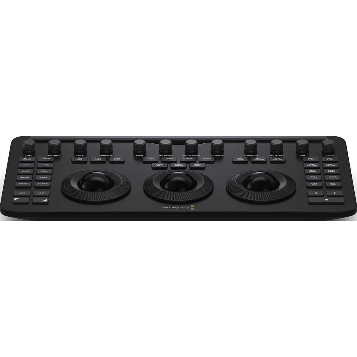 The new DaVinci Resolve Micro Color Panel features 3 high resolution weighted trackballs and 12 precision machined control knobs which give direct access to the most powerful primary correction features, making it easy to experiment and try new combinations. The primary knobs can be used to control Y Lift, Y Gamma, Y Gain, Contrast, Pivot, Mid-tone Detail, Color Boost, Shadow, Highlight, Saturation, Hue Rotation and Luminance Mix.