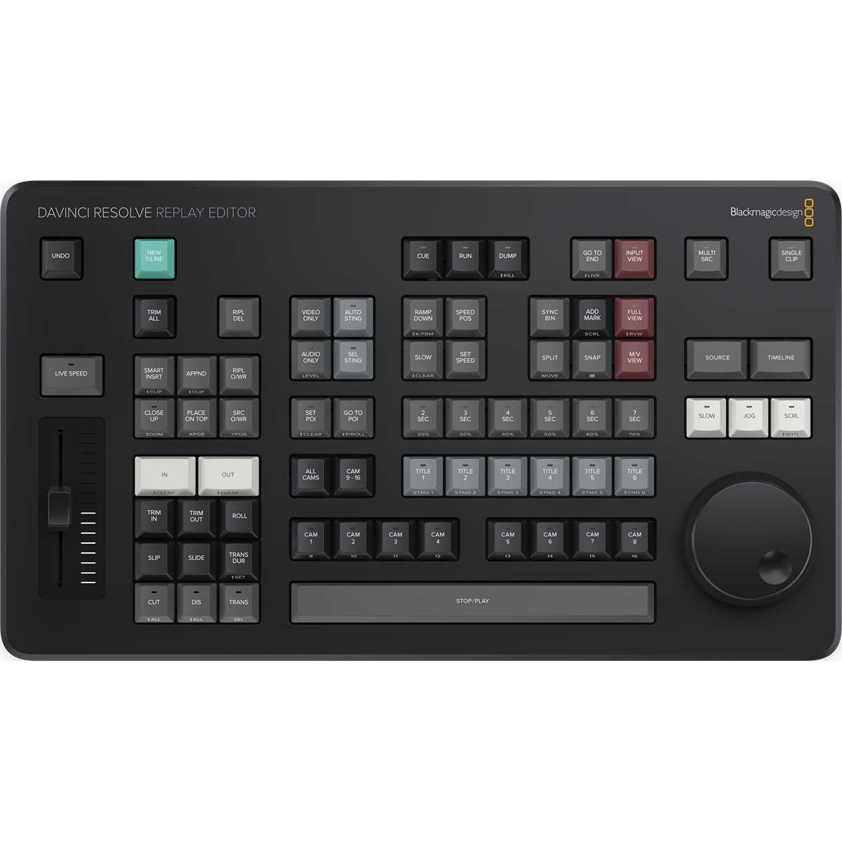 Editor panel specifically designed for multi-cam editing for news cutting and live sports replay. Includes buttons to make camera selection and editing extremely fast! Connects via Bluetooth or USB‑C. Available from 5/2024.