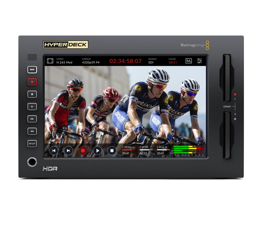The new HyperDeck Extreme 8K HDR features the trusted reliability of HyperDeck combined with new innovations such as space saving H.265 files, optional internal cache, 3D LUTs, native 8K and HDR support. With the ability to record native 8K in H.265, customers get reduced storage costs and amazing image quality. The large touch screen ensures a perfect view of their recording as well as control over all deck settings. Customers can then add HyperDeck Extreme Control to transform it into a traditional broadcast deck. This means HyperDeck Extreme is the perfect solution for the next generation of broadcast, live production and digital signage.