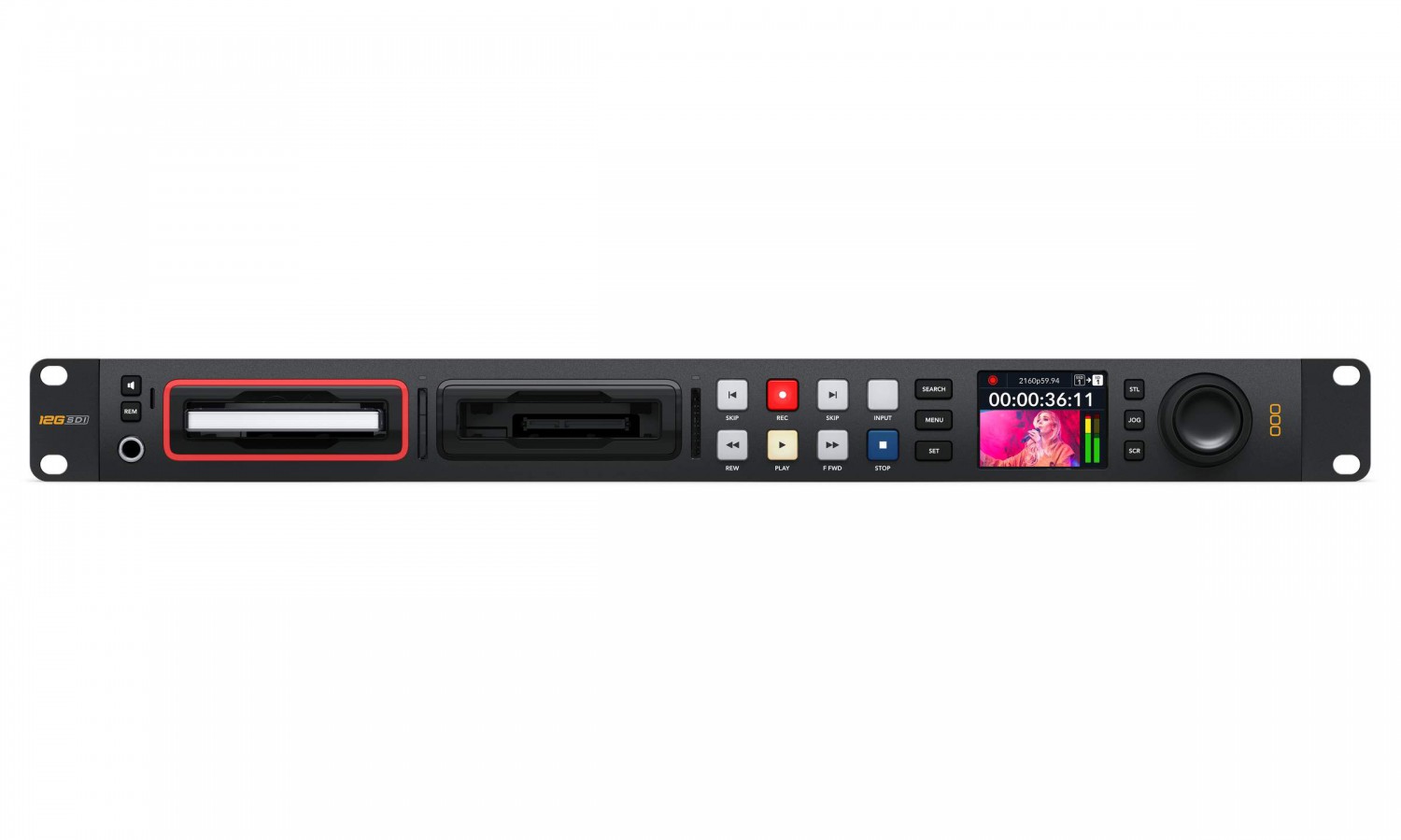 HyperDeck Studio features traditional deck style transport controls, including a search dial for jog, shuttle and scroll. The LCD includes monitoring for video, plus audio level meters, selectable between technically accurate VU or PPM ballistics. The combination of familiar VTR style controls with the built in LCD screen makes HyperDeck Studio incredibly fast to use and very easy to learn.