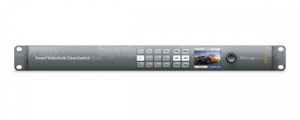 Blackmagic Design Smart Videohub CleanSwitch 12×12 is a new mixed format SD, HD and Ultra HD router that features full re-synchronization on every input for completely clean switches between non synchronized router crosspoints. The new Smart Videohub CleanSwitch 12×12 is a compact 1 rack unit router that features 6G-SDI for SD, HD and Ultra HD routing. Unlike other routers its size, the Smart Videohub CleanSwitch 12×12 has full re-synchronization on every input so it can be used with non-referenced equipment. Customers can plug in everything from the highest end broadcast decks all the way down to consumer grade video equipment and the CleanSwitch 12×12 will automatically synchronize them all. That means video can be routed and the signal can be switched without any glitches, picture rolls or other unwanted artifacts.Smart Videohub CleanSwitch 12×12 is the perfect small router for on air production like those used in remote trucks for critical breaking news because things happen fast…