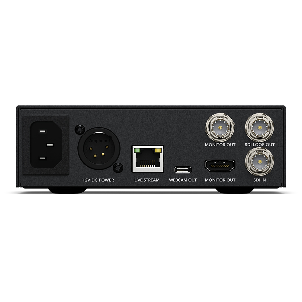 The device includes an output as a USB webcam, a standard converted 12G-SDI input and an output for stream monitoring. Additionally, you can stream over the internet using Ethernet, or connect a phone with 5G or 4G to take advantage of mobile data and via the new Blackmagic Cloud streaming features.