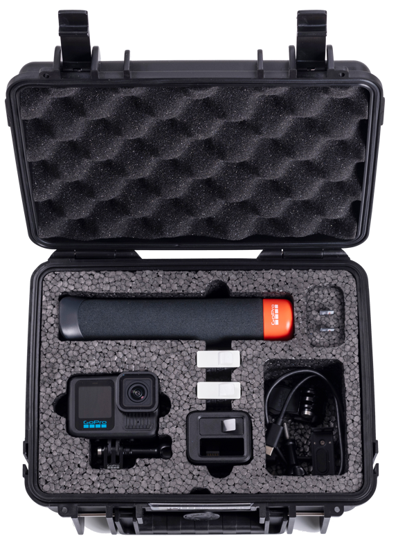 EVERYTHING MUST FIT: a GoPro is not cheap and thereby it should be protected during transport in the best way possible together with its equipment. The outdoor case 1000 (PP.41) with foam insert for a GoPro actioncam offers, despite its compact size, space for your GoPro and additional equipment.