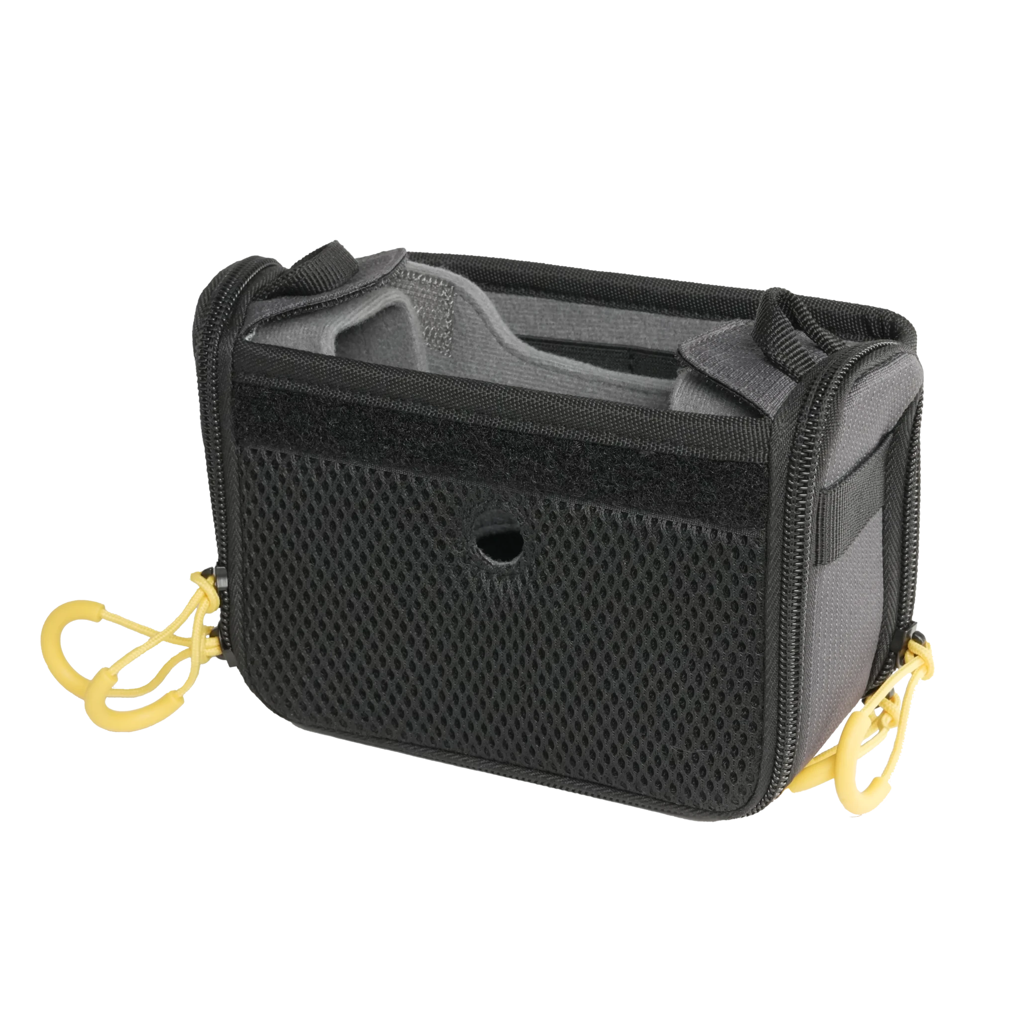 A full-length hook-and-loop strip across the front and back enables additional mounting options for accessories and cable management. These strips also act as the primary method for securing the included PVC clear rain shield.
