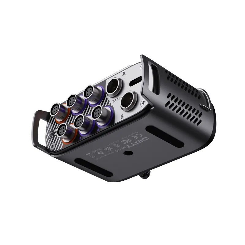 The Deity SPD-1 is a rugged power distribution tool for the sound mixer of today and tomorrow. Designed to work in a bag and on a sound cart, it includes a few features that make it a hybrid device. Features like its 10 amp max rating. The reversible mounting clip and “top-down” design make it suitable for rigging into any bag. And the 1/4” 20 threaded mounting options on the top and bottom allow it to be secured to a sound cart, rack shelf, or on 80/20.