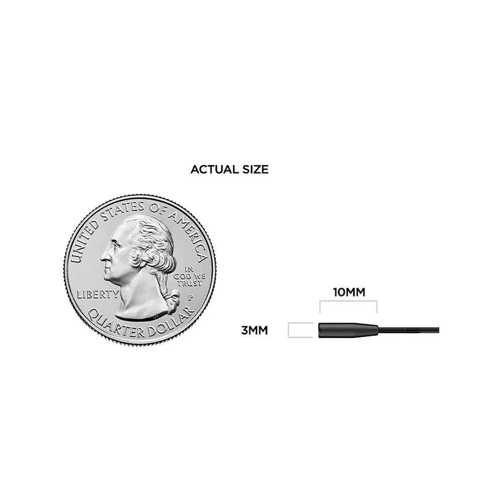 The 3mm diameter mic element and 1.2mm cable width make the mic visually discreet and conceal in clothing or costumes. The 1.8m silicone cable is designed to minimize handling noise even when threaded beneath tight-fitting outfits. Microdot adapters from Deity Microphones allow you to adapt the W.Lav Pro to Sennheiser Locking 3.5mm, Sony UWP 3.5mm, Lectrosonics TA5F, Shure TA4F, various Lemo transmitters and Deity Connect. (Note: Microdot adapters are sold separately).