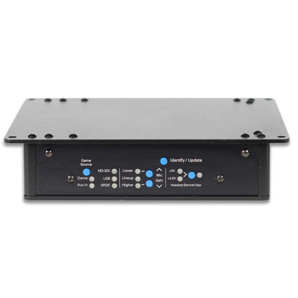 The GTM-SI combines the multiple functions required for the interfacing and communications required in eSports tournaments into one simple to use device. GTM provides the interface for the gamers, provides the intercom mix, and allows remote control by tournament engineers. There are separate modes that also mean the GTM can be used by the Coaches, Referees, and arena Announcers.