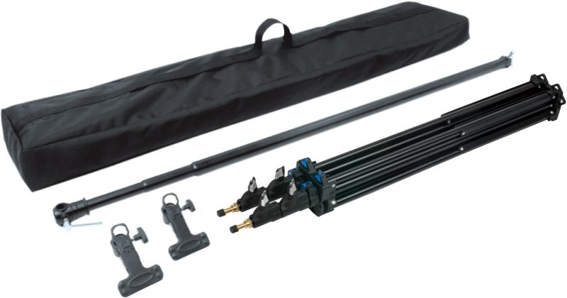With a 86cm closed length and 1.3 kg weight, it is ideal for traveling with the telescoping pole in the carrying bag. Two mini spring Alli clamps are included to hold the background in place.