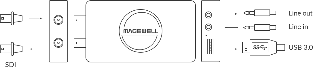 The Magewell USB Capture SDI 4K Plus is a powerful 4K SDI to USB capture dongle and allows users to bring one SD/HD/3G/2K/6G SDI signal to any computer or laptop through USB 3.0. This capture dongle accepts HD or 4K SDI (4096×2160) video signals and captures video up to 4096×2160 120fps. The Magewell USB Capture SDI 4K Plus offers SDI signal loop-through and supports discrete analog input and output for capture and monitoring. They are ideal for use with software for broadcasting, streaming, web conferencing, lecture capture, live production, medical imaging and more.