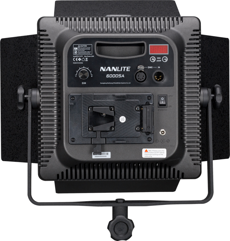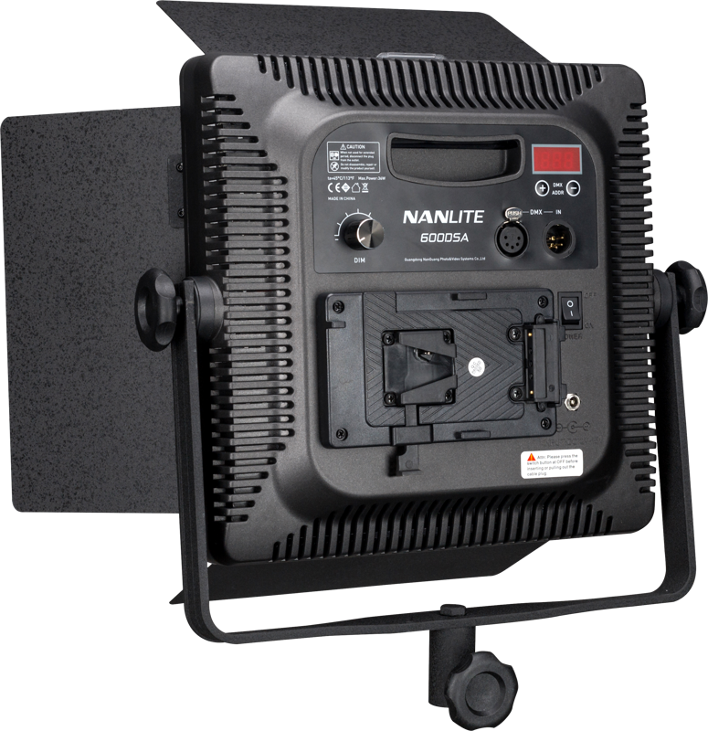 Perfect LED panel for budget minded shooters and anyone just getting started with constant lights, the 600DSA features a lightweight ABS housing, 0 to 100% dimming, a maximum output of 4536 lumens (6809 Lux @ 1m 5600K), a color temperature of 5600K, CRI/TLCI of 95/93, DMX and silent passive cooling. Powered by either AC power or Sony V-Mount style batteries (not included).