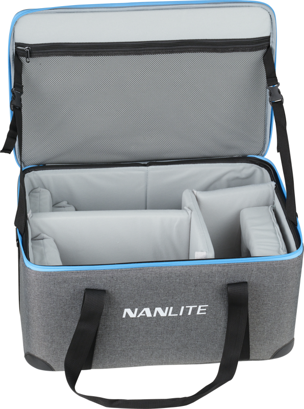 The Nanlite CCSFZ300II is a reinforced carrying bag with advanced padding that was designed to safely hold a Forza 300 II, 300B II, 500 II, or 500B II LED spotlight, control unit, and reflector. The bag is made with high-quality fabric with advanced foam lining on the interior.