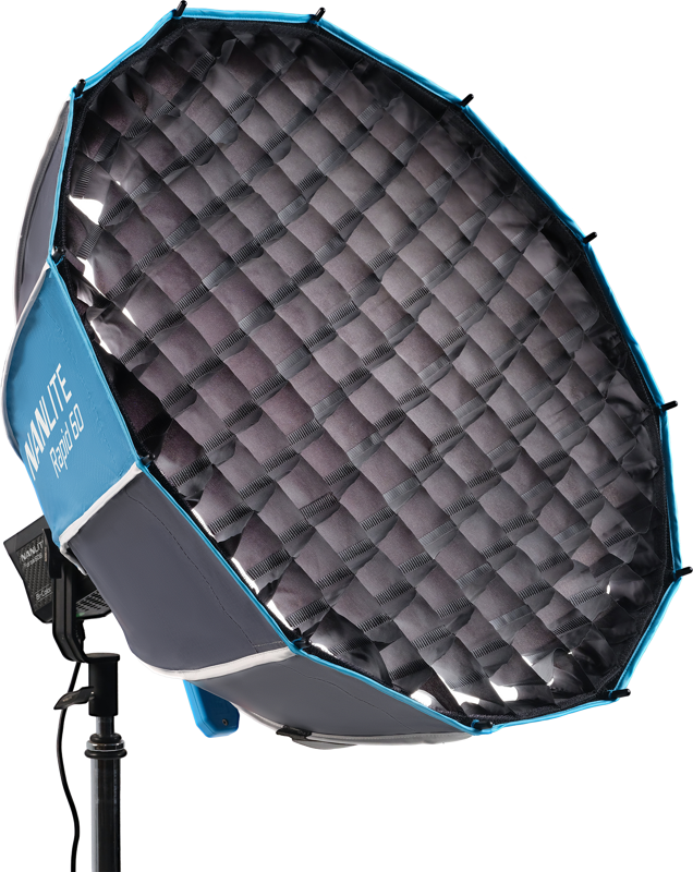 Designed to simplify softbox setups and easily integrate into your workflow, the Rapid 60 FM Mount Softbox from Nanlite is fully compatible with the brand’s FM mount fixtures. The Rapid 60 is a highly portable 23.6″ modifier featuring a circular design that creates soft light for photo and video work. Add the included grid to achieve more directional control or remove the two included diffusers for direct lighting. Unlike traditional softboxes, the Rapid 60 is easy to assemble and store in the supplied carry bag.