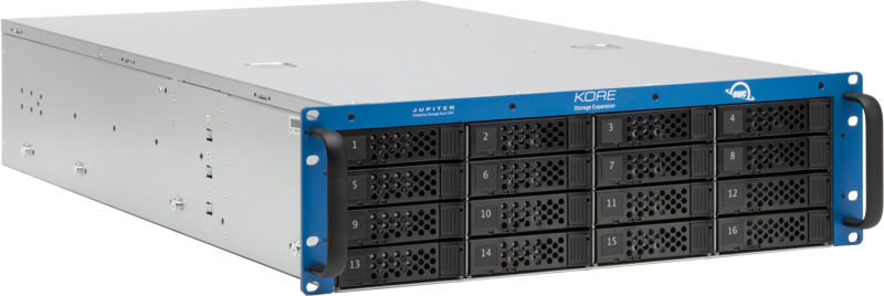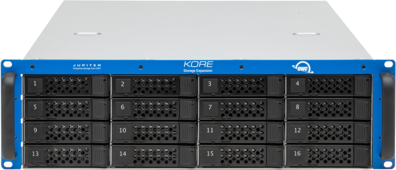 Up to 320TB, 2.5PB Expanded OWC Jupiter Kore provides a vast amount of direct-attached or expansion storage capacity with up to 160TB of storage in a 2U 8-drive rack system and up to 320TB of storage in a 3U 16-drive rack system. As your storage needs increase, attach additional Kore systems via Mini-SAS for even greater capacity up to 2.5PB on 3U systems.