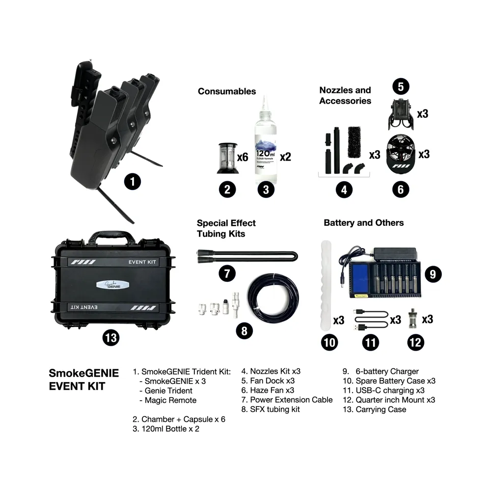 SmokeGENIE is able to generate multiple types of smoke, including: Dense Fog, atmospheric Haze, liquid smoke that behaves like dry-ice, steam-like jet pulses, stationery clouds, etc. Thanks to its versatility, SmokeGENIE is the ideal choice for creating unique and customized special effects.
