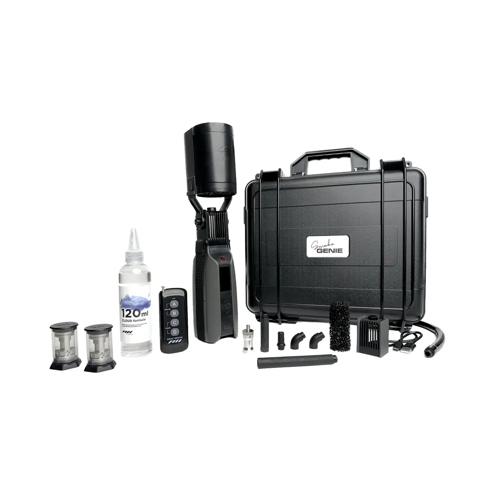 With a total of 25 different power modes, the Smoke GENIE enables you to create unique types of smoke, including dense fog, atmospheric haze, liquid smoke that behaves like dry ice, steam-like jet pulses, stationery clouds, and more.