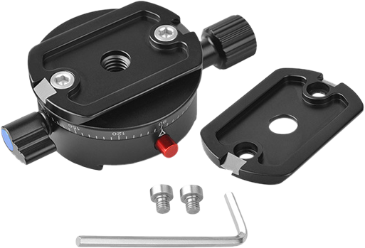 The 360° rotating base and engraved degree marks let you critically adjust your camera when shooting panoramas.