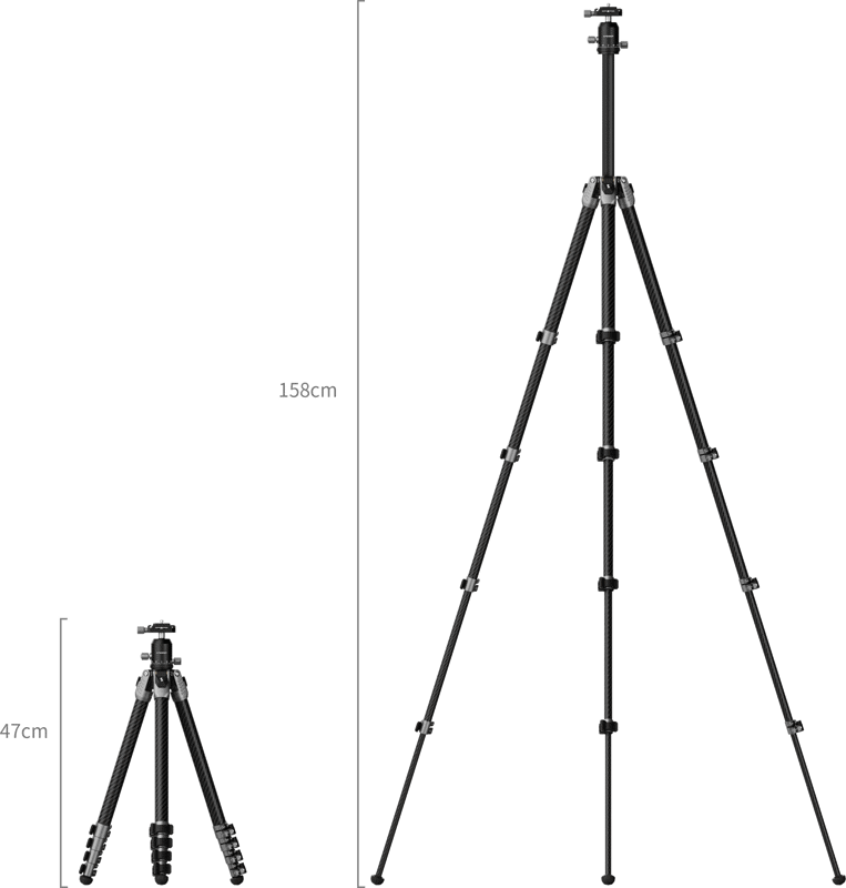 Constructed from high-strength carbon fiber materials, this tripod ensures outstanding stability despite its compact size.