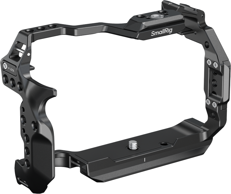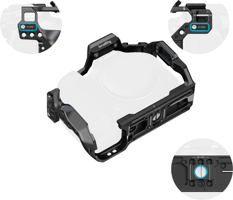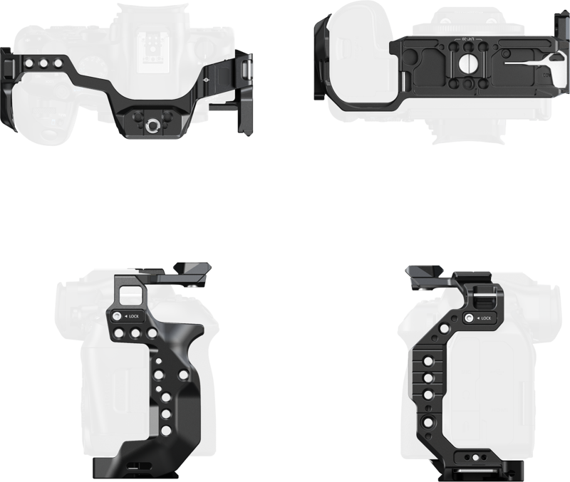 Provides robust protection and extensive mounting options for professional shooting. The cage securely attaches to the camera using a bottom 1/4″-20 screw and dual side locating blocks, while multiple silicone pads prevent scratches and ensure a snug fit. It maintains full access to buttons, card slots, the flip screen, and the battery compartment.
