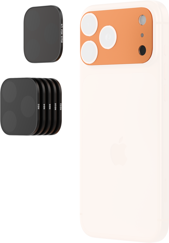 Integrates a dedicated base with a square magnetic filter. The base is precision-engineered to fit the phone’s camera module, serving both as a filter mount and a shield for daily lens protection.