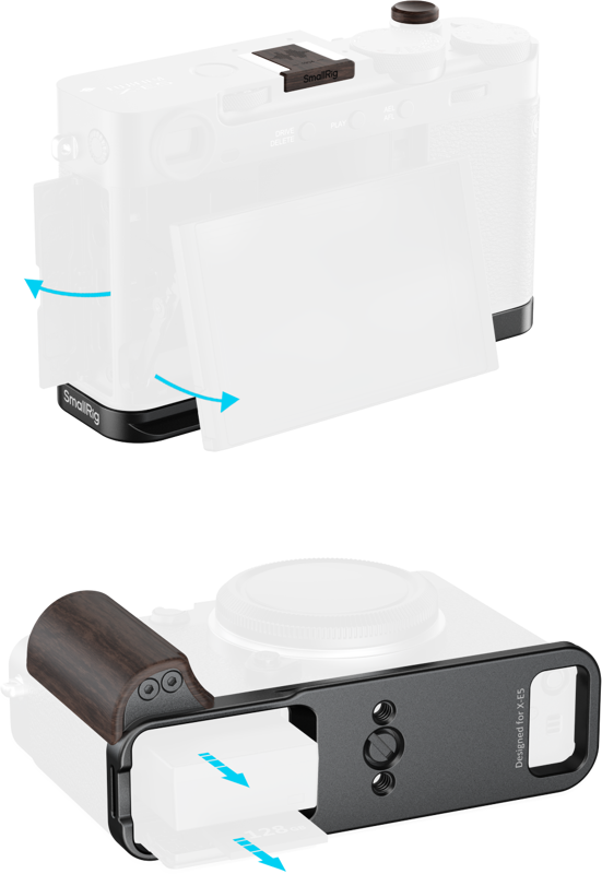 SMALLRIG 6237 L-Shaped Mount Plate with Wooden Handle for FUJIFILM X-E5 (Ebony, Black)
